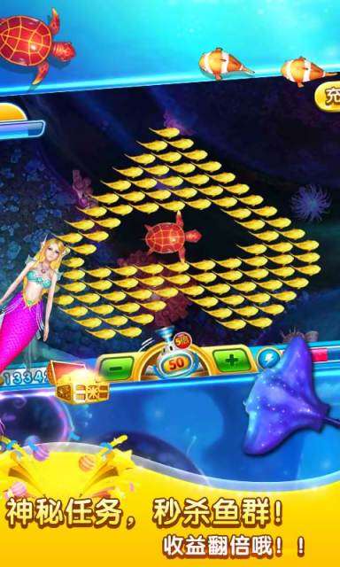 3. 游戏中的鱼类种类繁多,包括黄金鱼、美人鱼等珍稀鱼类,每种鱼类的分值和金币奖励都不同。