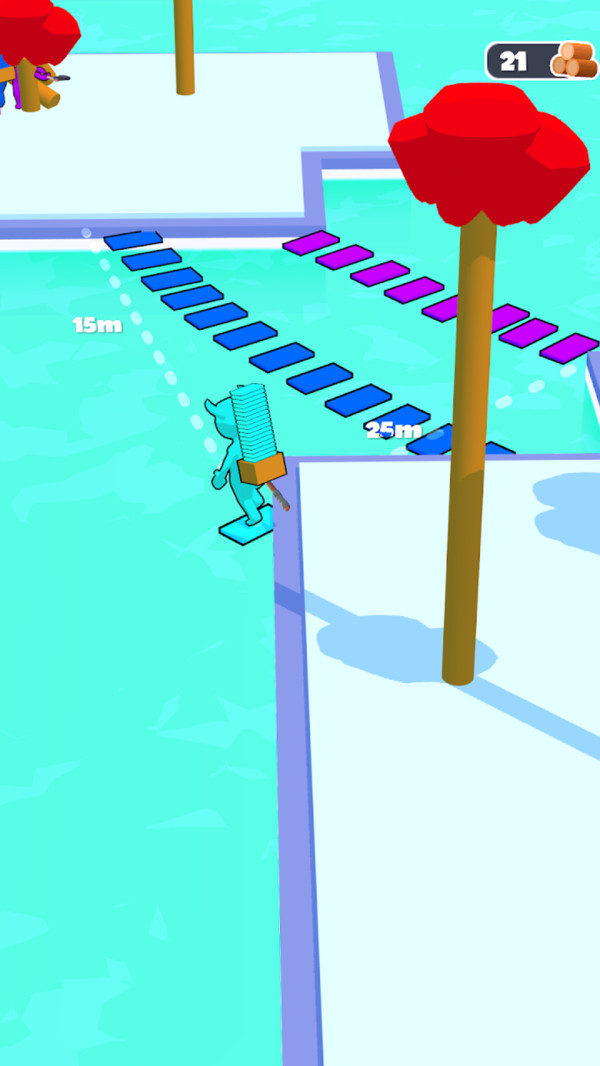 2. 收集资源:砍伐的树木可以收集起来,用于铺成地砖,前往下一个岛屿继续砍树。