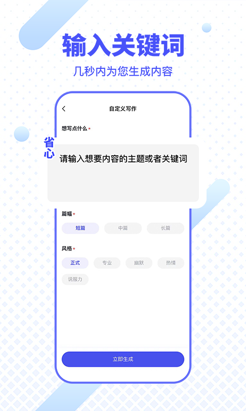 4. 生成文章:选择文章类型(如短篇、中篇、长篇),并勾选风格后,点击“立即生成”即可获取文章。