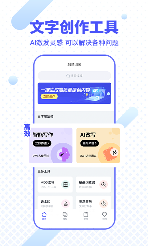 2. 选择功能:在主页选择“智能写作”、“ai改写”或“文章续写”等功能。