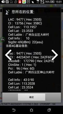 1. 显示当前通讯基站的位置、方位角、信号强度、距离和邻区信息。
