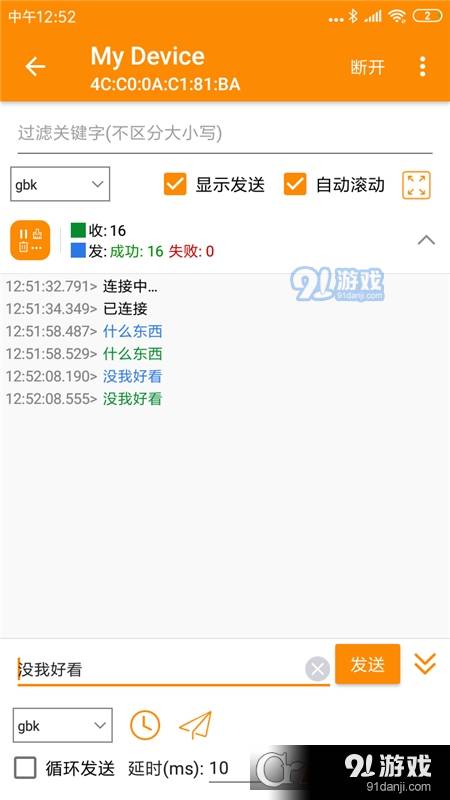 1. 设备搜索与连接:支持循环搜索设置,自动确认uuid,实时显示搜索到的设备信息(信号强度、mac地址、配对等),并可根据设备名称、mac地址等条件过滤搜索结果。