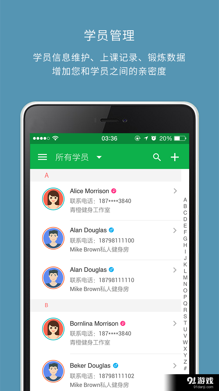 3. 学员管理:教练可以统一管理学员信息、查看学员上课记录和锻炼数据,提升对学员健身情况的了解。