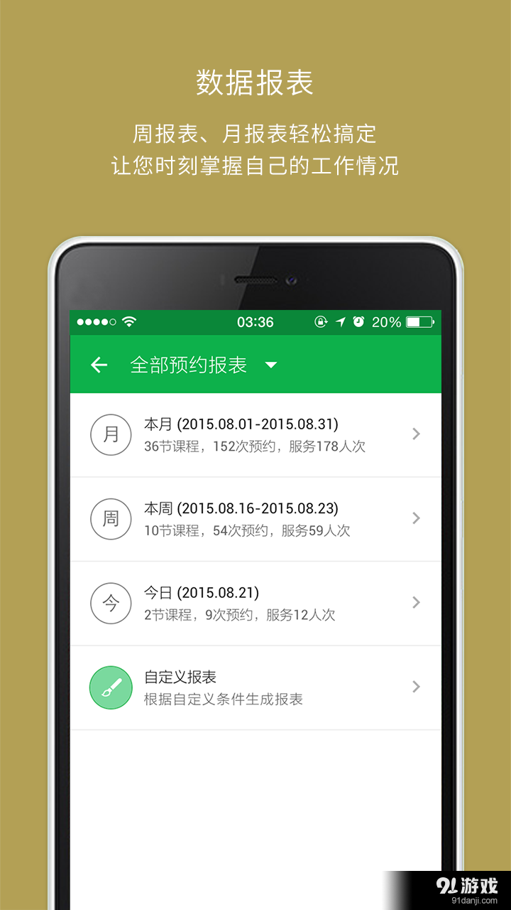 4. 数据报表:提供课程报表和销售报表,教练可以按时间周期查看报表或按需筛选生成自定义报表。