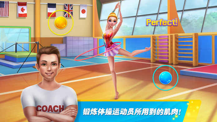 1. 选择心仪角色,进入不同场景展开艺术体操表演。