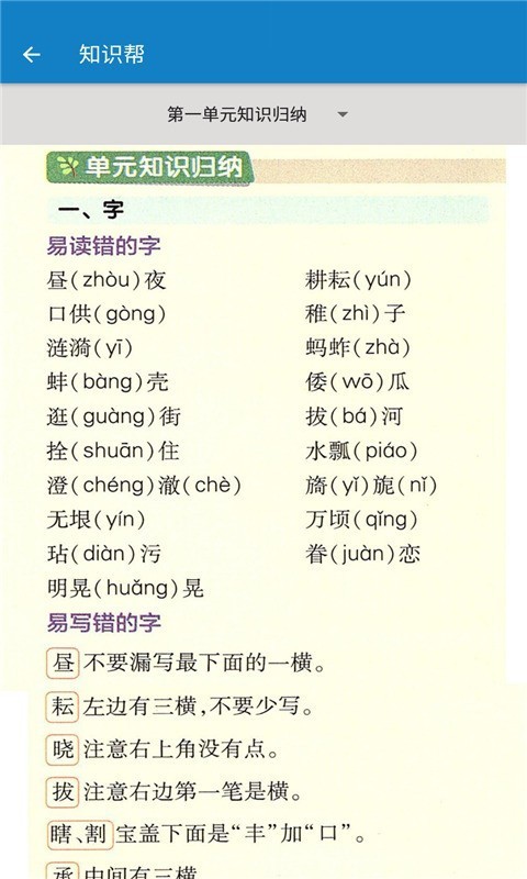 3. 知识帮:对各个单元的字、词、句、段、篇进行归纳和总结。