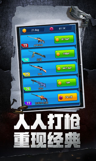 3. 拥有丰富的武器升级系统,通过战斗获取经验和金币来提升枪械属性。