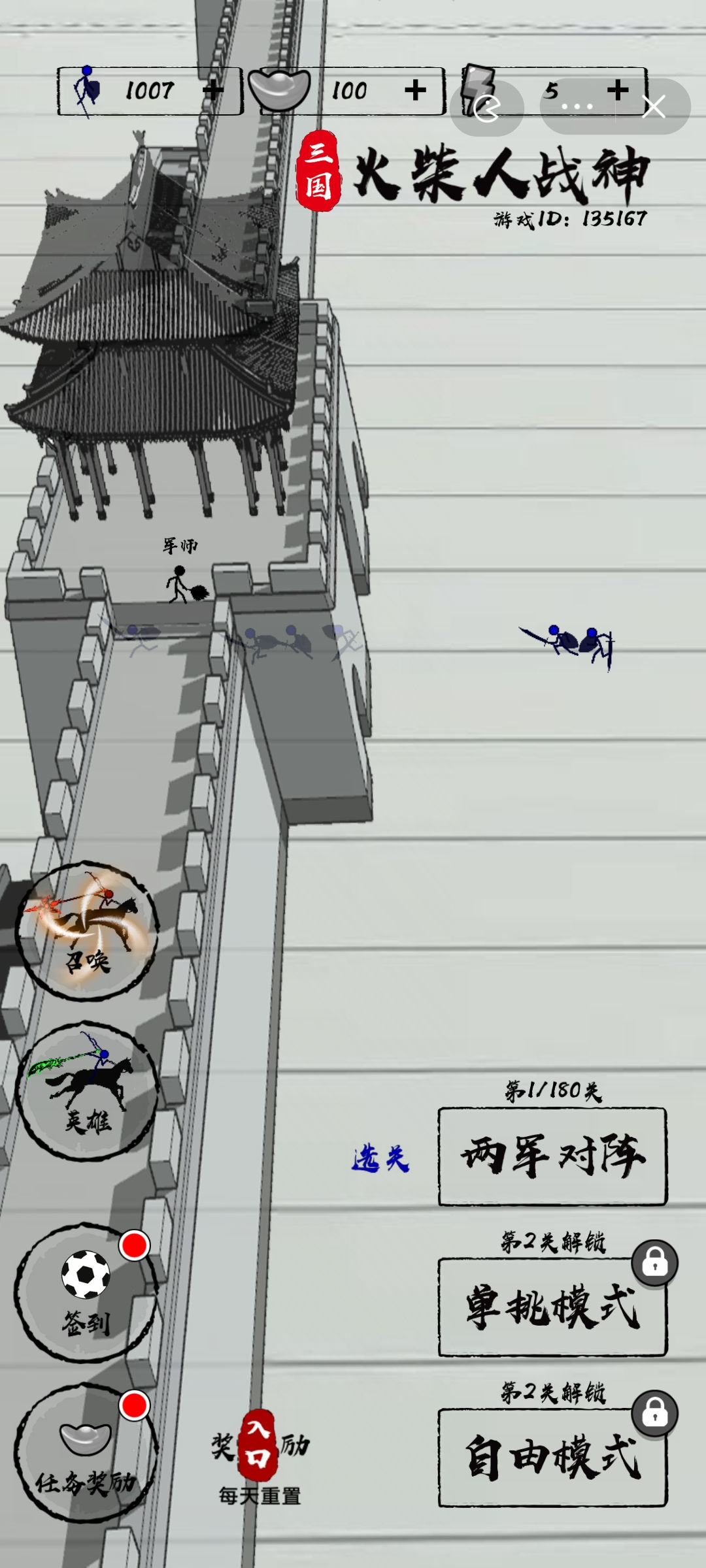 三国火柴人战神是一款以三国时期为背景,结合火柴人风格的放置策略战争冒险游戏。玩家将扮演一名火柴人指挥官,在烽火连天的三国世界中,招募并统领各种火柴人士兵,与其他玩家或npc军队展开激烈的对战。游戏以其独特的火柴人画风、丰富的策略玩法和刺激的战斗体验,吸引了众多玩家的关注。