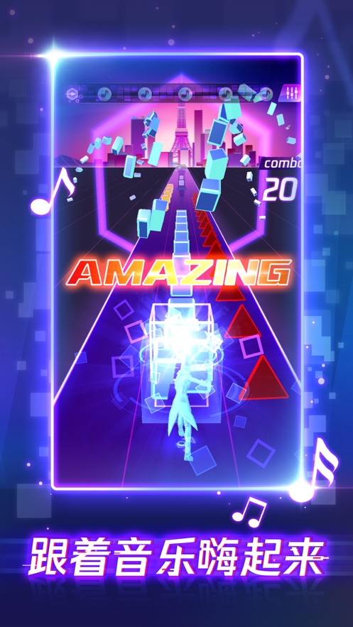 1. 方块:玩家需要跟随音乐节奏不断出现的方块,成功会获得分数,失败则游戏结束。