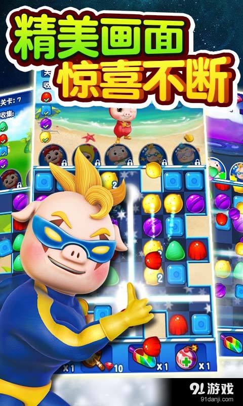1. 游戏目标:通过消除糖果获得能量,召唤猪猪侠等角色与敌人战斗,完成关卡。