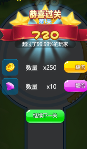 5. 领取奖励:过关后,根据分数领取相应的奖励,包括金币和道具。