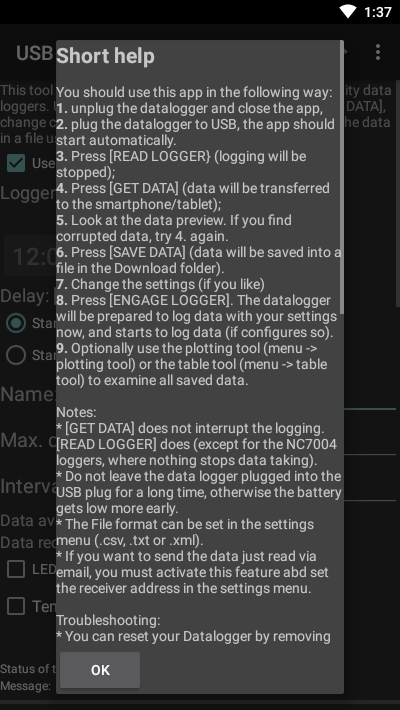 usb数据记录仪是一款专为连接安卓手机与外部传感设备而设计的数据记录软件。它支持通过usb转换器轻松连接手机与多种数据记录工具,如温度、湿度、压力、声音、电压、电流和co气体浓度等传感设备,满足用户多样化的数据记录需求。这款软件无需安装专业软件,操作便捷,兼容安卓系统的平板电脑与智能手机,为用户提供了一个高效、灵活的数据记录平台。