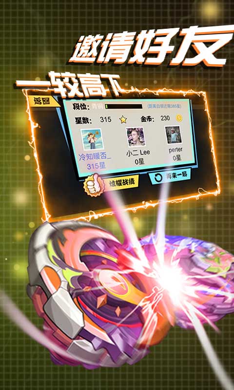 4. 精美画面:采用先进的虚拟物理引擎技术,模拟真实的陀螺运动,为玩家呈现出身临其境的战斗场面,增加游戏的真实感。