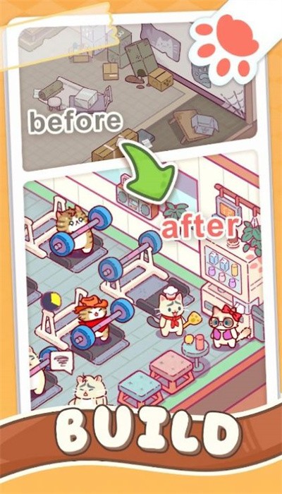 1. 设施建设:玩家可以自由建设并升级健身房的设施,包括跑步机、椭圆仪、举重器材等,以满足不同猫咪的健身需求。