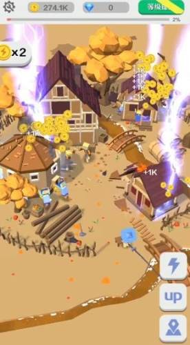 1. 神力运用:玩家可以使用各种神力来进行破坏或创造,如召唤雷电打击房屋、创造河流与森林等,这些行为将影响游戏世界的发展。