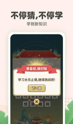 3. 持续更新:软件内容持续更新,不断引入新的成语和题目,保持软件的新鲜感和挑战性。