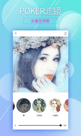 1. 国内首个机器人绘画引擎:poker滤镜采用了国内首个机器人绘画引擎,通过更智能细腻的制图技术,让照片在短时间内成为艺术品。