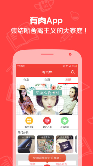 1. 实物分享社区:有肉app是全球首个实物分享社区,开创了全新的分享模式。