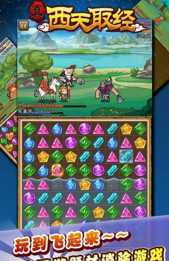 2. 妖怪挑战:在取经路上,师徒四人会遇到各种妖怪,玩家需要通过消除宝石来发动攻击,击败妖怪才能继续前进。