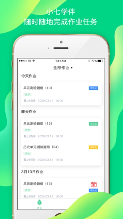 1. 支持与七天网络教师端联动,学生可以查看所在班级的作业,及时获取学习任务。