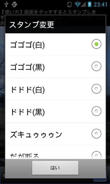 1. 象声词邮票:软件内置多种jojo的奇妙冒险中的经典象声词邮票,如“gogogo”、“dododo”等,用户可以根据喜好自由添加到照片中。