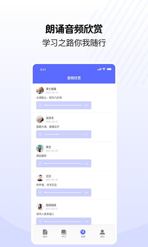 3. 提供全民朗诵美文练习,用户能听到更多人的朗诵声音。