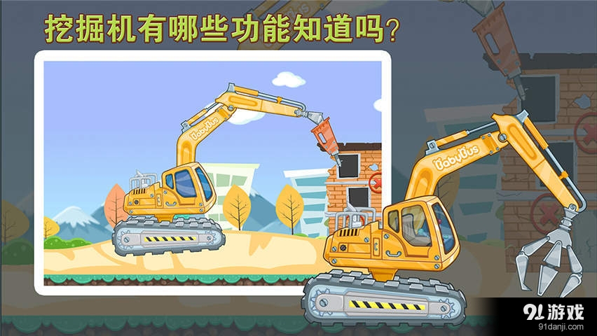 1. 车辆认知:应用内包含挖掘机、土方车、吊车、装载机等多款工程车认知内容,帮助儿童全面了解不同车辆的特点与用途。