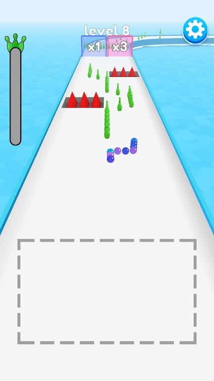 2. 玩家可以通过拖动保龄球来撞击赛道上的球瓶,完成任务并获得奖励。