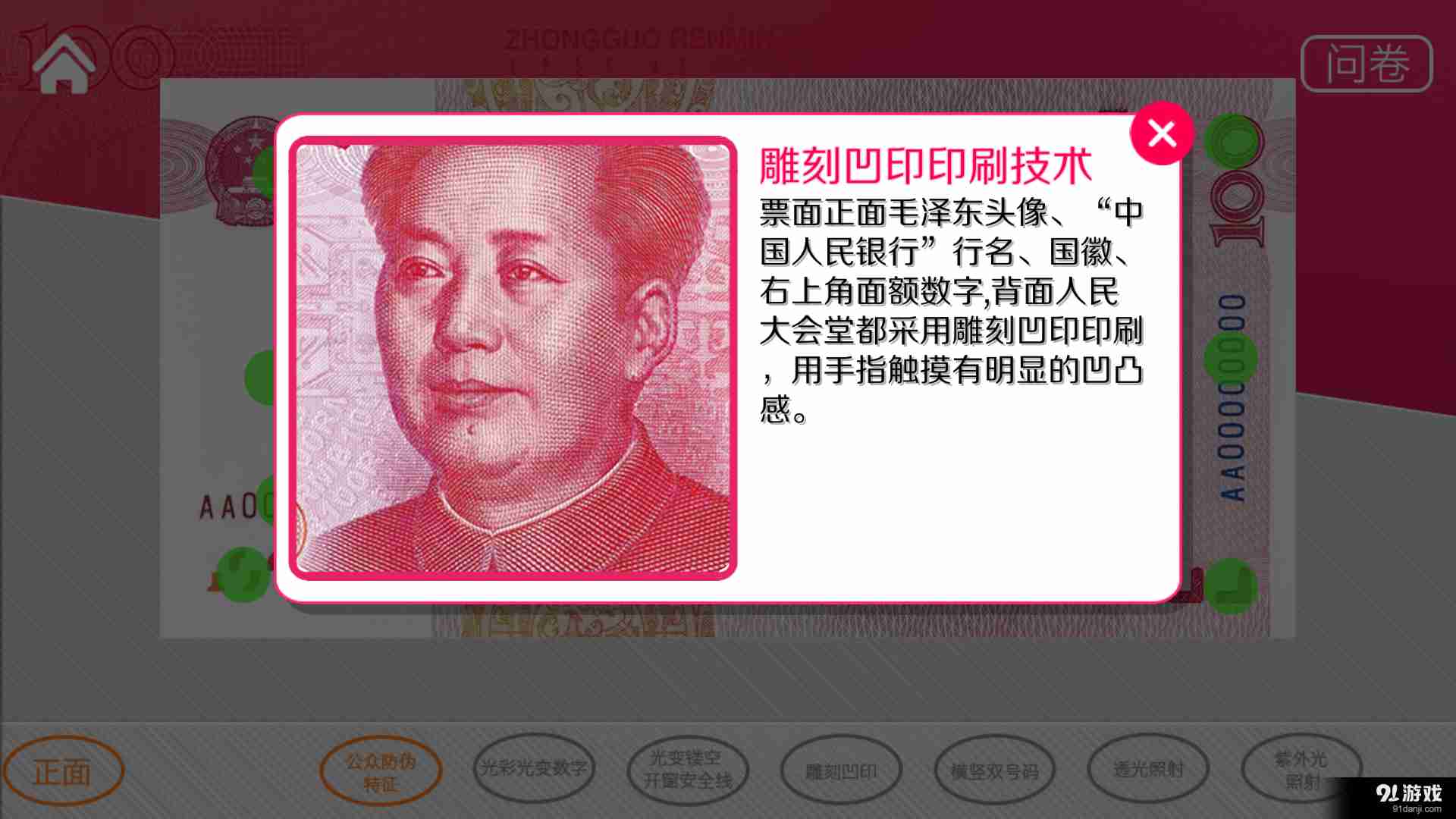 1. 专业讲解:配备了专业的讲解内容,帮助用户深入理解人民币的防伪特征。