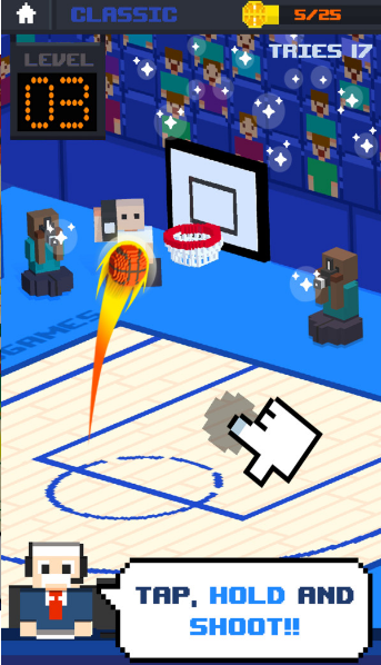 1. 玩家按住屏幕蓄力,松开手指即可将篮球投出。