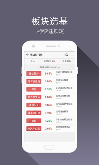 4. 详实的基金信息:提供基金排行榜、热销基金榜、主题选基等多种信息。