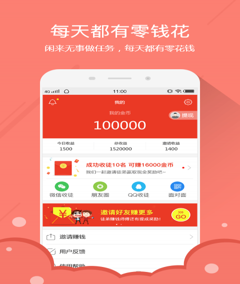 3. 丰富的赚钱任务:提供多种赚钱任务,包括视频播放、新闻阅读、应用推广等,用户可以根据自己的兴趣和时间选择合适的任务进行赚钱。