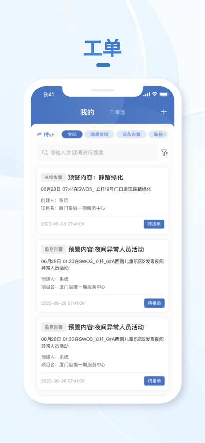小慧管家苹果版是一款专为iphone用户设计的综合物业管理服务系统,由厦门兆慧网络科技有限公司开发。这款软件基于移动互联网和物联网技术,集成了品质核查、日常巡检、任务管理、消防系统监测、访客管理、视频监控、工单管理以及机器人等多种功能。它旨在通过移动设备和云平台,实现对物业管理服务的全面监控和实时管理,提升物业管理服务的质量和效率,为业主提供更加便捷、安全、舒适的居住环境。