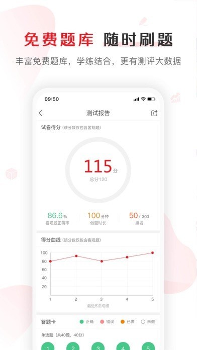 3. 学习辅助:提供错题集、模拟考场、真题考场等学习辅助工具,帮助用户高效复习。