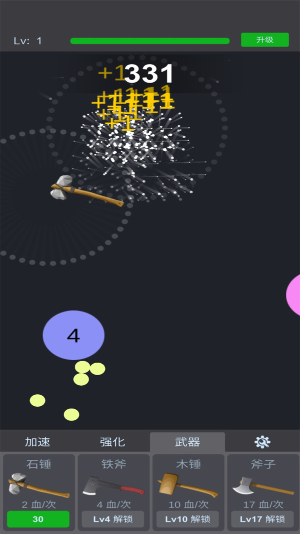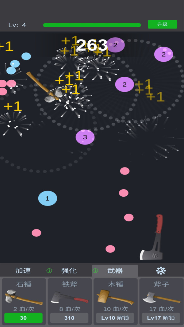 2. 游戏中,小球上的数字代表需要被撞击的次数,玩家需要通过不断撞击来减少数字,直至消除小球。