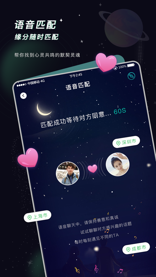 1. 语音交友:空语提供语音匹配功能,让用户能够听到对方的声音,从而更加直观地了解对方,拉近彼此的距离。