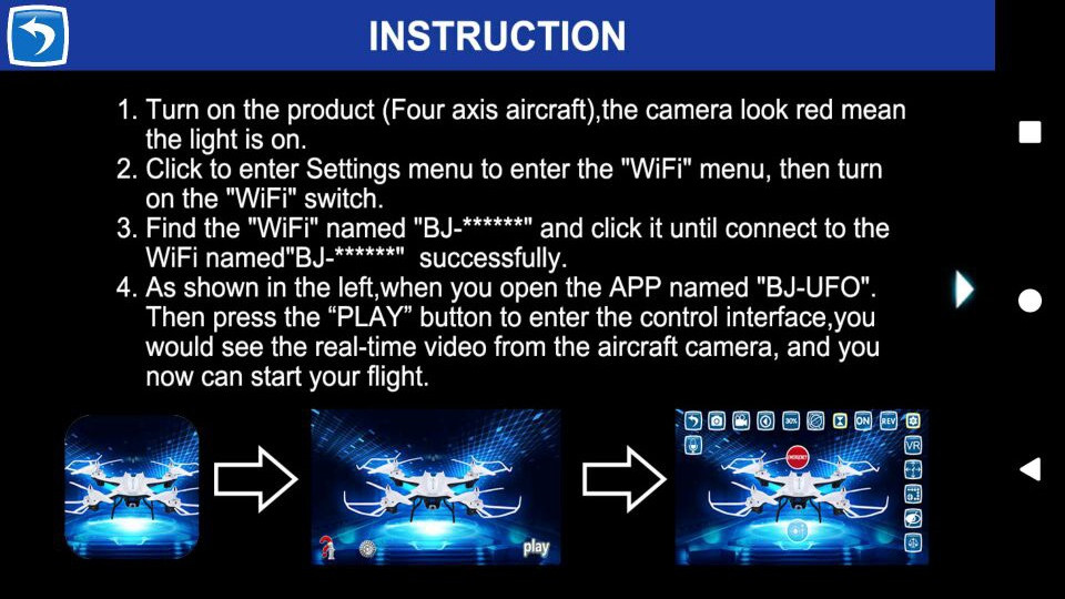 2. 连接飞行器:通过wifi连接,将安卓手机与四轴飞行器进行配对。