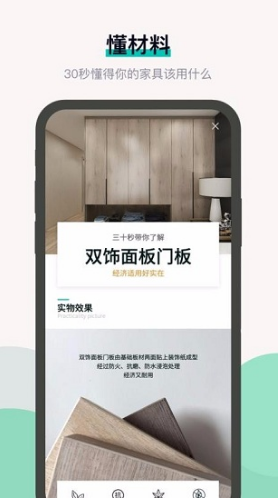 3. 专业的百科科普:软件内设有专业的百科科普模块,通过深入浅出的图文帮助用户了解软装定制的主材、辅材、五金科普及选择常识。