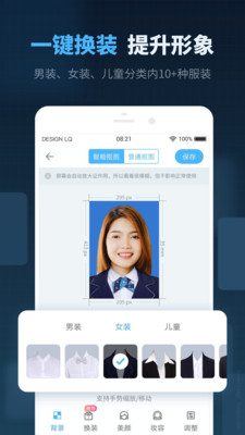 4. 一键换装:提供多种男女服装和童装选择,一键换装,轻松搭配,满足不同场景下的证件照需求。