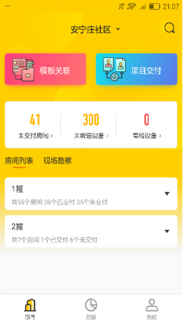 2. 在首页中,用户可查看到未交付的房间和未绑定的设备,点击“添加设备”按钮进行设备绑定。