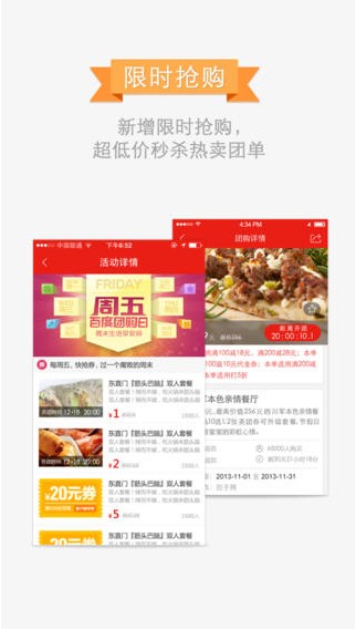 3. 支付功能:支持第三方团购网站的团单直接支付购买,简化购物流程。
