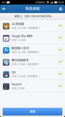 手机加速:结束后台运行的进程,释放内存,提高设备运行速度。