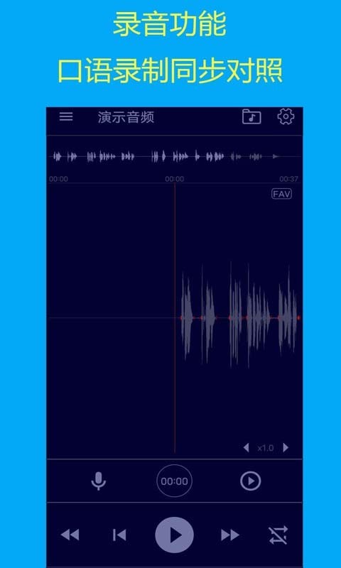 2. 支持口语录音,同步和原始音频对比播放,了解更多的英语知识。