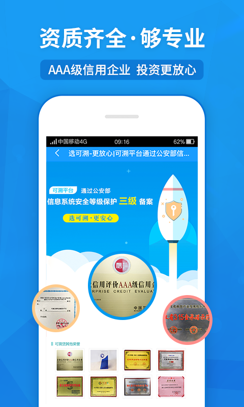 可溯金融是一款专注于“三农”领域的综合性互联网金融投资理财app,由国鼎文化科技产业发展股份有限公司开发。它旨在通过互联网平台的信息介绍与撮合,为农村经济发展与农业产业调整提供必要的资金支持,解决“三农”生态圈体系在发展过程中所遭遇的难题。平台通过普惠金融改善农村生产生活消费方式,积累并进一步完善农村征信大数据,共建共享透明高效的“互联网+金融+农业”的智慧产业生态圈。