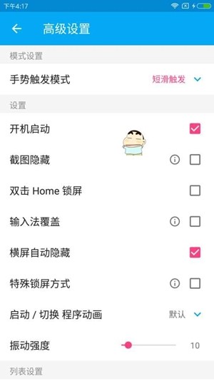 3. 交互设置:软件支持多种交互方式,包括动画效果、横屏隐藏、点按拖拽和远距离取消等,提供流畅且便捷的操作体验。