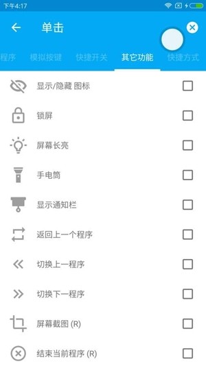 5. 手势操作:软件支持手势操作,用户可以通过设置不同的手势动作来实现特定的功能,如拖拽、隐藏、关机、重启等。