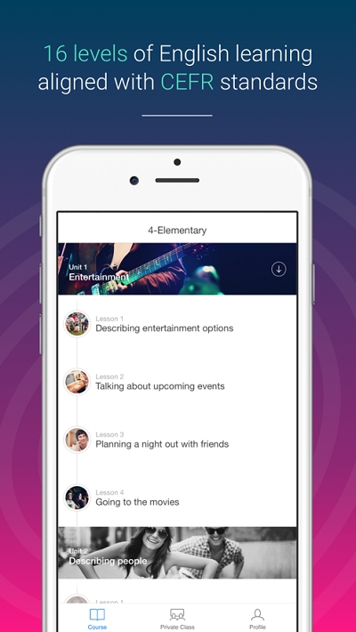 用户需要先注册成为ef english live business的学员,才能访问软件中的课程内容。