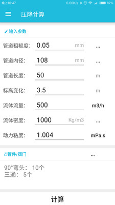 1. 管道压降计算:根据管道长度、管径、流体流速等参数,计算管道内的压降情况。