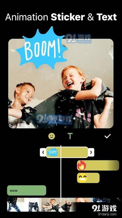5. 文本和表情符:为视频添加文本,多种字体自由选择,同时提供潮流动态贴纸和表情,使视频更加生动有趣。