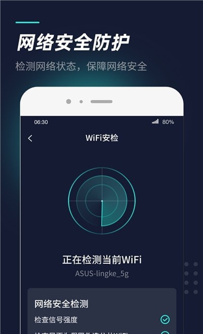 2. 安全检测:提供全天候的wifi安全检测功能,实时监测网络状态,有效防御虚假、钓鱼wifi等安全风险。